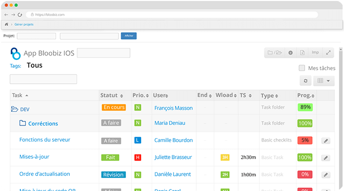 Pour gérer efficacement le bon déroulement de chacun de vos projets, Bloobiz a mis en place un ensemble de solutions spécifiquement adaptées à l'organisation des tâches de chacun. Finis les problèmes de délais, les documents perdus et l'oubli de tâches à faire.